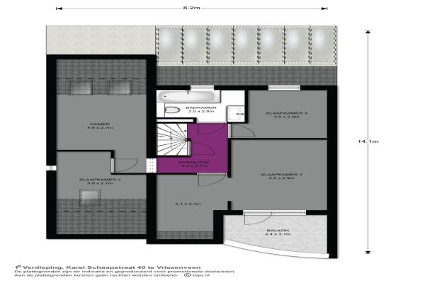 Het adres van deze woning uit 1996 is Karel Schaapstraat 40 te Vriezenveen. Het pand heeft een oppervlakte van 161m² en een perceeloppervlakte van 250m² en heeft 7 kamers kamers waarvan 5 slaapkamers. De geschatte waarde van deze woning is € 259.000.