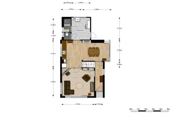 Het adres van deze woning uit 1932 is Gaestmabuorren 8 te Burgum. Het pand heeft een oppervlakte van 85m² en een perceeloppervlakte van 2005m² en heeft 3 kamers kamers waarvan 2 slaapkamers. De geschatte waarde van deze woning is € 275.000.