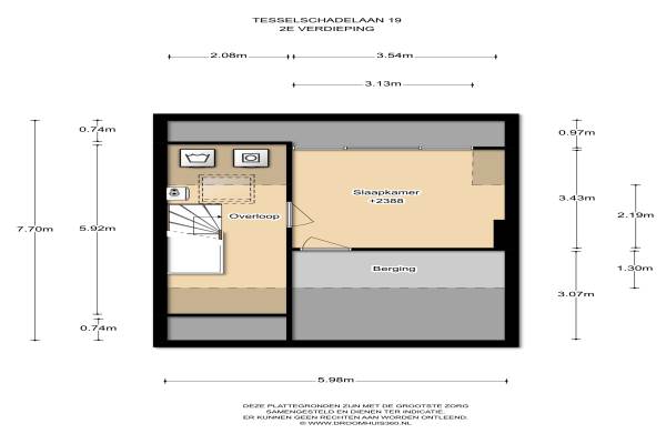 Het adres van deze woning uit 1960 is Tesselschadelaan 19 te Uithoorn. Het pand heeft een oppervlakte van 118m² en een perceeloppervlakte van 215m² en heeft 7 kamers kamers waarvan 5 slaapkamers. De geschatte waarde van deze woning is € 265.000.