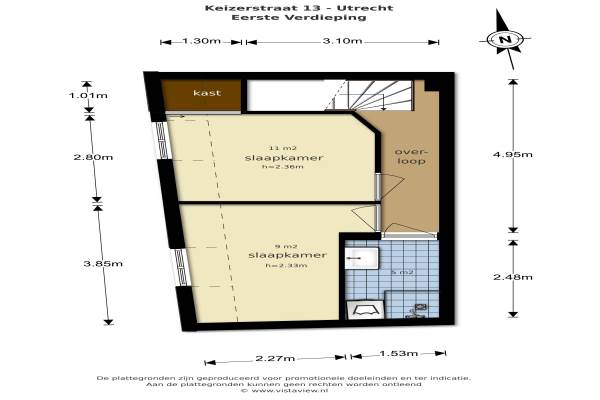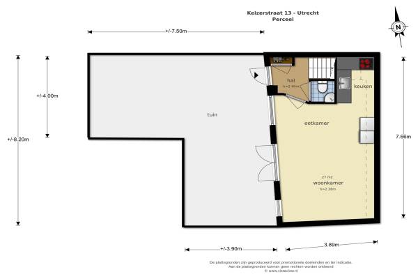 Het adres van deze woning is Keizerstraat 13 te Utrecht. Het pand heeft een oppervlakte van 64m² en een perceeloppervlakte van 95m² en heeft 3 kamers kamers waarvan 2 slaapkamers. De geschatte waarde van deze woning is € 335.000.