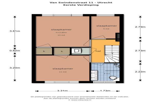 Het adres van deze woning uit 1928 is Van Swindenstraat 11 te Utrecht. Het pand heeft een oppervlakte van 122m² en een perceeloppervlakte van 84m² en heeft 7 kamers kamers waarvan 5 slaapkamers. De geschatte waarde van deze woning is € 549.000.