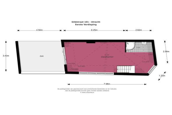 Het adres van deze woning uit 1890 is Gildstraat 101 te Utrecht. Het pand heeft een oppervlakte van 75m² en een perceeloppervlakte van 53m² en heeft 2 kamers kamers waarvan 1 slaapkamers. De geschatte waarde van deze woning is € 275.000.