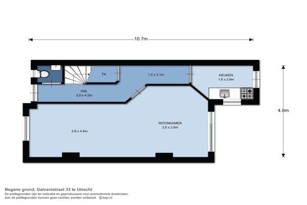 Het adres van deze woning uit 1915 is Galvanistraat 33 te Utrecht. Het pand heeft een oppervlakte van 83m² en een perceeloppervlakte van 96m² en heeft 4 kamers kamers waarvan 3 slaapkamers. De geschatte waarde van deze woning is € 259.000.