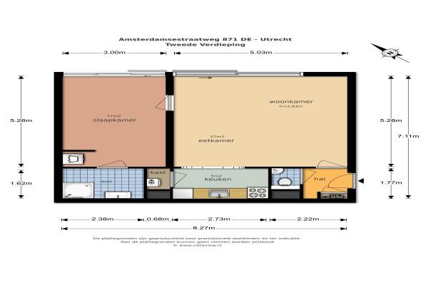 Het adres van deze woning uit 2005 is Amsterdamsestraatweg 871 te Utrecht. Het pand heeft een oppervlakte van 60m² en heeft 2 kamers kamers waarvan 1 slaapkamers. De geschatte waarde van deze woning is € 175.000.