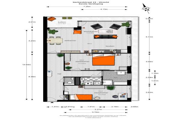 Het adres van deze woning is Gerhardstraat 23 te Utrecht. Het pand heeft een oppervlakte van 100m² en heeft 3 kamers kamers waarvan 2 slaapkamers. De geschatte waarde van deze woning is € 295.000.