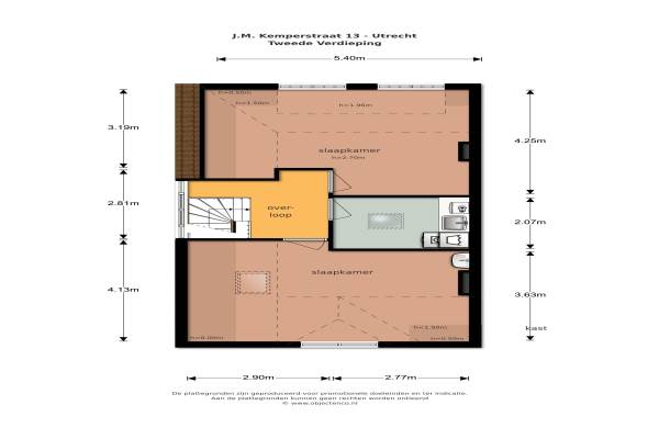 Het adres van deze woning uit 1915 is J.M. Kemperstraat 13 te Utrecht. Het pand heeft een oppervlakte van 174m² en een perceeloppervlakte van 149m² en heeft 7 kamers kamers waarvan 5 slaapkamers. De geschatte waarde van deze woning is € 850.000.