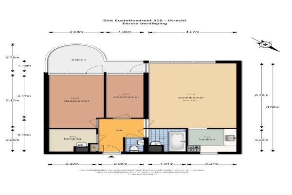 Het adres van deze woning uit 1986 is St.-Eustatiusdreef 310 te Utrecht. Het pand heeft een oppervlakte van 73m² en heeft 3 kamers kamers waarvan 2 slaapkamers. De geschatte waarde van deze woning is € 165.000.