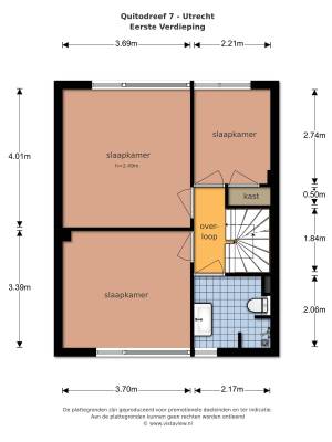 Het adres van deze woning is Quitodreef 7 te Utrecht. Het pand heeft een oppervlakte van 121m² en een perceeloppervlakte van 142m² en heeft 5 kamers kamers waarvan 4 slaapkamers. De geschatte waarde van deze woning is € 239.500.