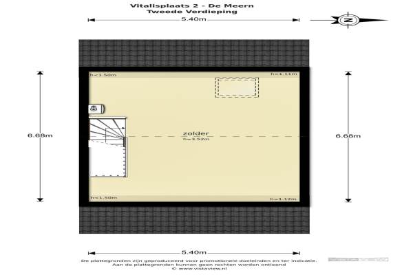 Het adres van deze woning uit 2005 is Vitalisplaats 2 te De Meern. Het pand heeft een oppervlakte van 133m² en een perceeloppervlakte van 140m² en heeft 5 kamers kamers waarvan 4 slaapkamers. De geschatte waarde van deze woning is € 300.000.