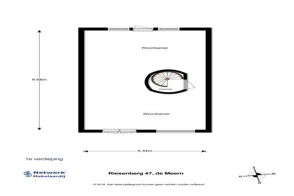 Het adres van deze woning uit 2000 is Riesenberg 47 te De Meern. Het pand heeft een oppervlakte van 154m² en een perceeloppervlakte van 159m² en heeft 5 kamers kamers waarvan 3 slaapkamers. De geschatte waarde van deze woning is € 375.000.