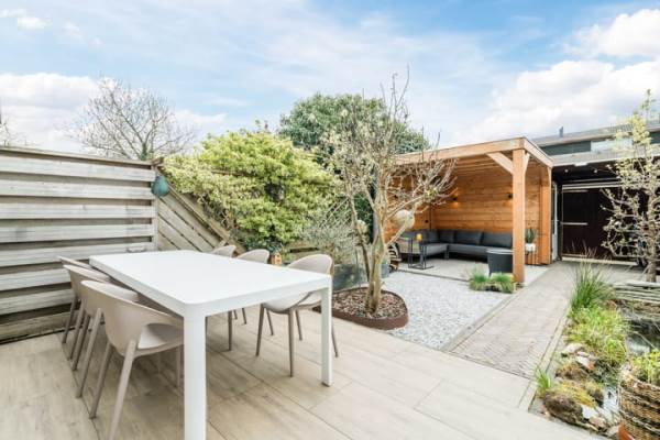 Het adres van deze woning uit 1996 is Kleine Hof 8 te Vleuten. Het pand heeft een oppervlakte van 89m² en een perceeloppervlakte van 128m² en heeft 4 kamers kamers waarvan 3 slaapkamers. De geschatte waarde van deze woning is € 485.000.