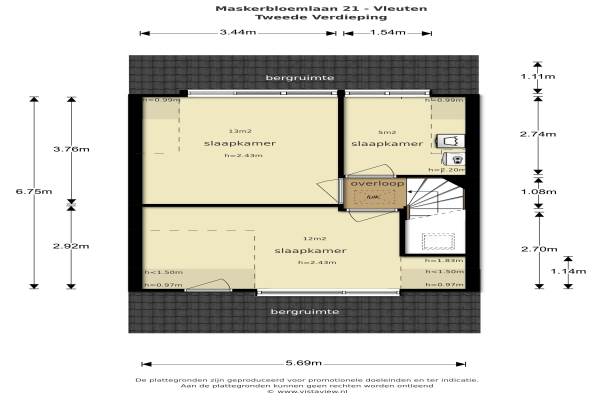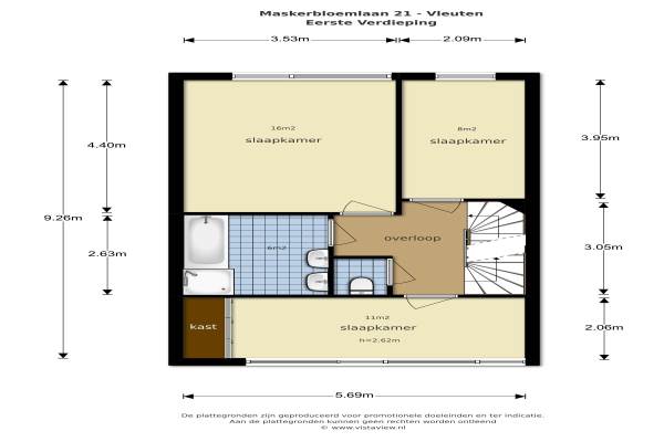 Het adres van deze woning uit 2006 is Maskerbloemlaan 21 te Vleuten. Het pand heeft een oppervlakte van 144m² en een perceeloppervlakte van 143m² en heeft 7 kamers kamers waarvan 6 slaapkamers. De geschatte waarde van deze woning is € 409.950.