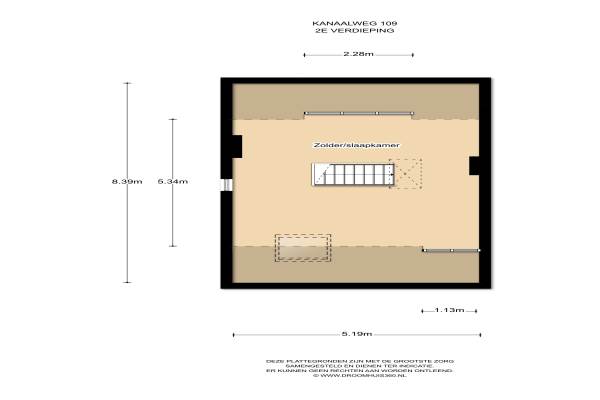Het adres van deze woning uit 1938 is Kanaalweg 109 te Utrecht. Het pand heeft een oppervlakte van 119m² en een perceeloppervlakte van 228m² en heeft 5 kamers kamers waarvan 3 slaapkamers. De geschatte waarde van deze woning is € 595.000.