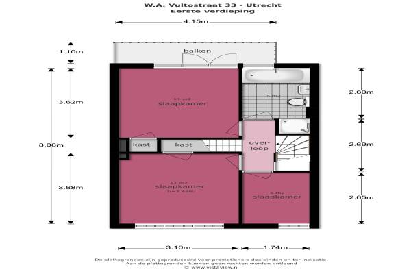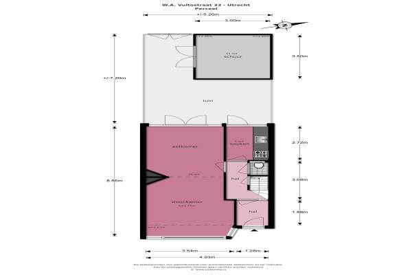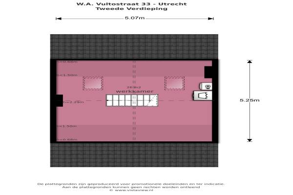 Het adres van deze woning uit 1936 is W.A. Vultostraat 33 te Utrecht. Het pand heeft een oppervlakte van 98m² en een perceeloppervlakte van 152m² en heeft 5 kamers kamers waarvan 3 slaapkamers. De geschatte waarde van deze woning is € 350.000.