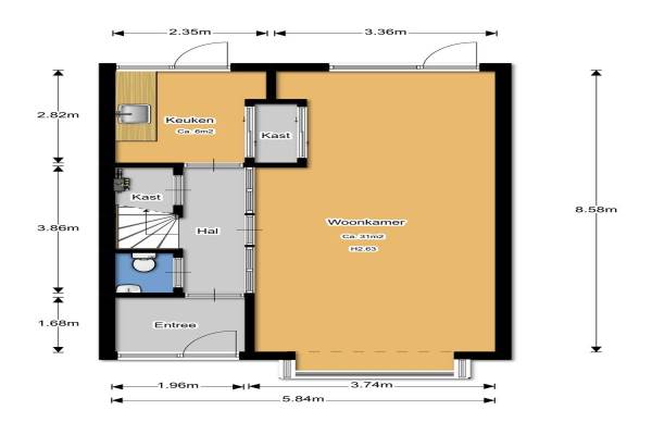 Het adres van deze woning uit 1970 is Valkenkamp 63 te Driebergen-Rijsenburg. Het pand heeft een oppervlakte van 130m² en een perceeloppervlakte van 166m² en heeft 7 kamers kamers waarvan 6 slaapkamers. De geschatte waarde van deze woning is € 289.000.