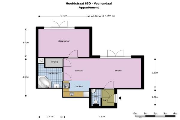 Het adres van deze woning uit 2006 is Hoofdstraat 66D te Veenendaal. Het pand heeft een oppervlakte van 58m² en heeft 2 kamers kamers waarvan 1 slaapkamers. De geschatte waarde van deze woning is € 175.000.