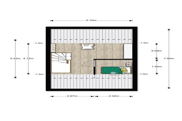 Het adres van deze woning uit 2012 is Van Garderenerf 5 te Veenendaal. Het pand heeft een oppervlakte van 102m² en een perceeloppervlakte van 117m² en heeft 5 kamers kamers waarvan 4 slaapkamers. De geschatte waarde van deze woning is € 244.500.