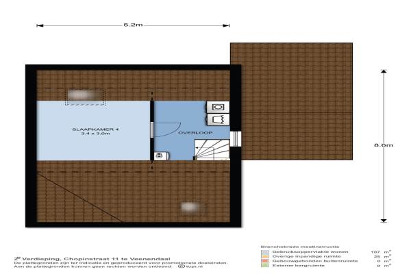 Het adres van deze woning uit 1989 is Chopinstraat 11 te Veenendaal. Het pand heeft een oppervlakte van 107m² en een perceeloppervlakte van 169m² en heeft 5 kamers kamers waarvan 4 slaapkamers. De geschatte waarde van deze woning is € 344.000.