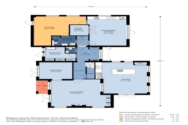 Het adres van deze woning uit 2009 is Ruisseveen 19 te Veenendaal. Het pand heeft een oppervlakte van 312m² en een perceeloppervlakte van 1415m² en heeft 11 kamers kamers waarvan 7 slaapkamers. De geschatte waarde van deze woning is € 1.375.000.
