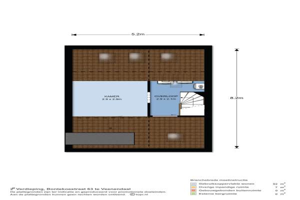Het adres van deze woning uit 1991 is Bontekoestraat 63 te Veenendaal. Het pand heeft een oppervlakte van 92m² en een perceeloppervlakte van 141m² en heeft 5 kamers kamers waarvan 4 slaapkamers. De geschatte waarde van deze woning is € 247.500.