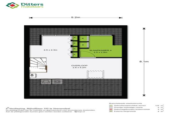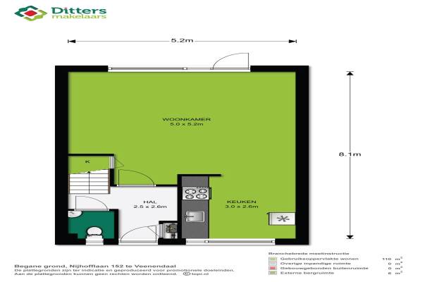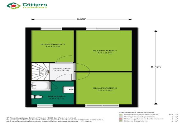 Het adres van deze woning uit 1992 is Nijhofflaan 152 te Veenendaal. Het pand heeft een oppervlakte van 110m² en een perceeloppervlakte van 135m² en heeft 5 kamers kamers waarvan 4 slaapkamers. De geschatte waarde van deze woning is € 238.000.