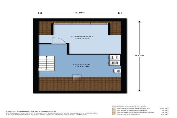 Het adres van deze woning uit 1930 is Panhuis 99 te Veenendaal. Het pand heeft een oppervlakte van 100m² en een perceeloppervlakte van 385m² en heeft 5 kamers kamers waarvan 4 slaapkamers. De geschatte waarde van deze woning is € 225.000.