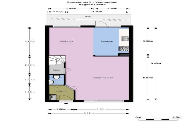 Het adres van deze woning uit 1987 is Zeezwaluw 5 te Veenendaal. Het pand heeft een oppervlakte van 110m² en een perceeloppervlakte van 159m² en heeft 5 kamers kamers waarvan 4 slaapkamers. De geschatte waarde van deze woning is € 225.000.