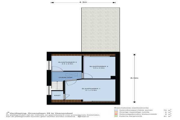 Het adres van deze woning uit 1935 is Groenelaan 39 te Veenendaal. Het pand heeft een oppervlakte van 74m² en een perceeloppervlakte van 281m² en heeft 4 kamers kamers waarvan 3 slaapkamers. De geschatte waarde van deze woning is € 275.000.