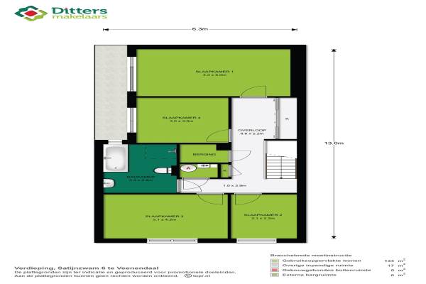 Het adres van deze woning uit 1999 is Satijnzwam 6 te Veenendaal. Het pand heeft een oppervlakte van 142m² en een perceeloppervlakte van 235m² en heeft 5 kamers kamers waarvan 4 slaapkamers. De geschatte waarde van deze woning is € 297.000.