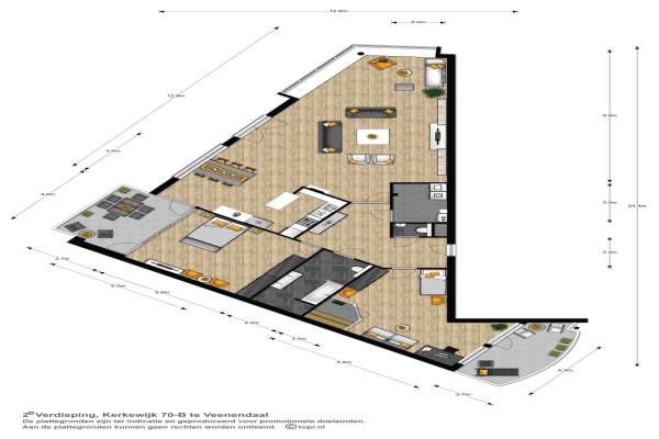 Het adres van deze woning uit 2006 is Kerkewijk 70 te Veenendaal. Het pand heeft een oppervlakte van 176m² en heeft 3 kamers kamers waarvan 2 slaapkamers.