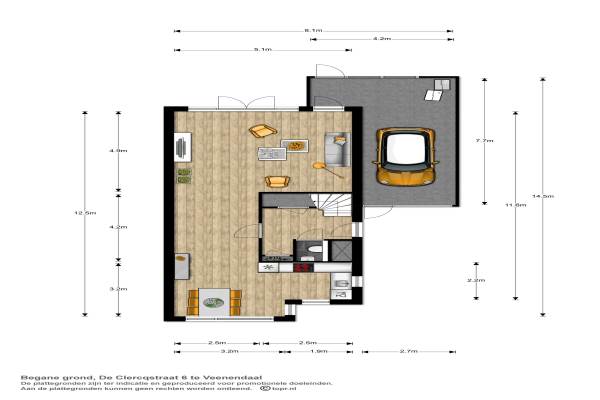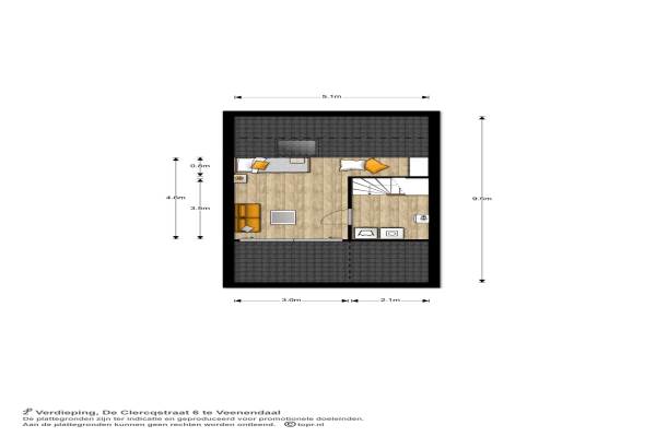 Het adres van deze woning uit 2003 is De Clercqstraat 6 te Veenendaal. Het pand heeft een oppervlakte van 135m² en een perceeloppervlakte van 221m² en heeft 4 kamers kamers waarvan 3 slaapkamers. De geschatte waarde van deze woning is € 389.500.