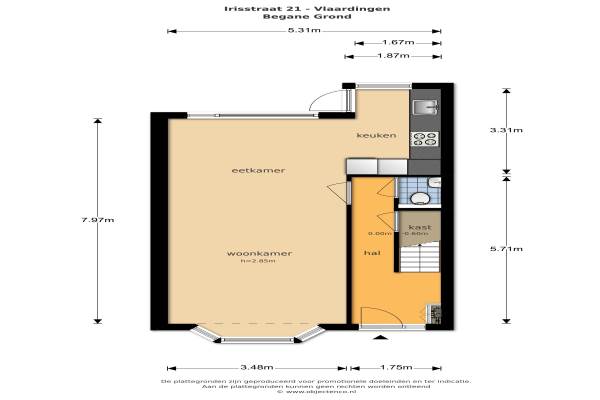 Het adres van deze woning uit 1932 is Irisstraat 21 te Vlaardingen. Het pand heeft een oppervlakte van 102m² en een perceeloppervlakte van 124m² en heeft 4 kamers kamers waarvan 3 slaapkamers. De geschatte waarde van deze woning is € 275.000.