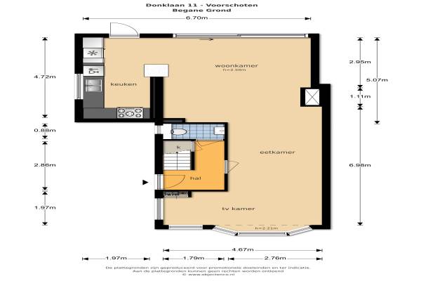 Het adres van deze woning uit 1930 is Donklaan 11 te Voorschoten. Het pand heeft een oppervlakte van 116m² en een perceeloppervlakte van 287m² en heeft 4 kamers kamers waarvan 3 slaapkamers. De geschatte waarde van deze woning is € 345.000.