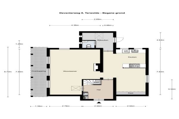 Het adres van deze woning uit 1900 is Deventerweg 8 te Terwolde. Het pand heeft een oppervlakte van 111m² en een perceeloppervlakte van 1030m² en heeft 3 kamers kamers waarvan 2 slaapkamers. De geschatte waarde van deze woning is € 570.000.