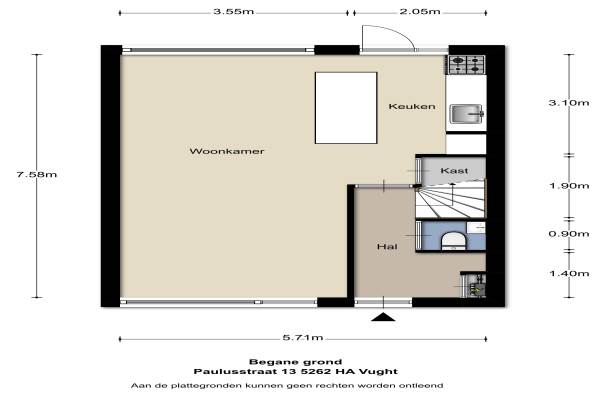 Het adres van deze woning uit 1966 is Paulusstraat 13 te Vught. Het pand heeft een oppervlakte van 120m² en een perceeloppervlakte van 145m² en heeft 5 kamers kamers waarvan 4 slaapkamers. De geschatte waarde van deze woning is € 267.500.