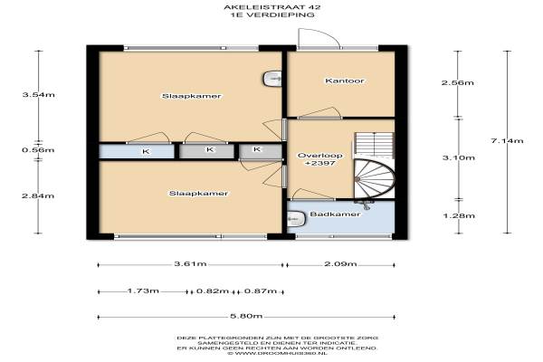 Het adres van deze woning uit 1967 is Akeleistraat 42 te Wageningen. Het pand heeft een oppervlakte van 126m² en een perceeloppervlakte van 229m² en heeft 5 kamers kamers waarvan 4 slaapkamers. De geschatte waarde van deze woning is € 250.000.
