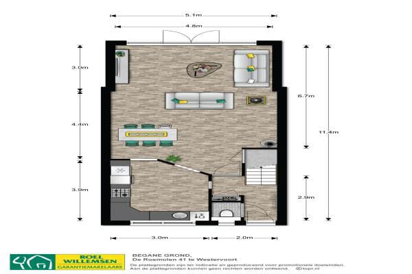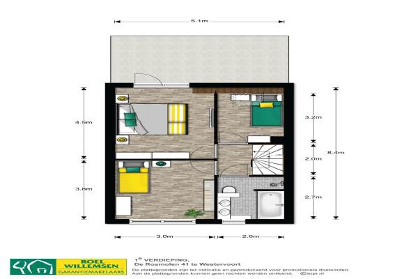 Het adres van deze woning uit 1987 is De Rosmolen 41 te Westervoort. Het pand heeft een oppervlakte van 123m² en een perceeloppervlakte van 162m² en heeft 5 kamers kamers waarvan 4 slaapkamers. De geschatte waarde van deze woning is € 215.000.