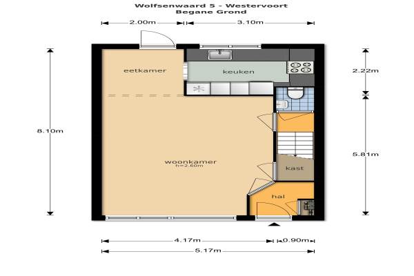 Het adres van deze woning uit 1983 is Wolfsenwaard 5 te Westervoort. Het pand heeft een oppervlakte van 97m² en een perceeloppervlakte van 136m² en heeft 5 kamers kamers waarvan 4 slaapkamers. De geschatte waarde van deze woning is € 125.000.