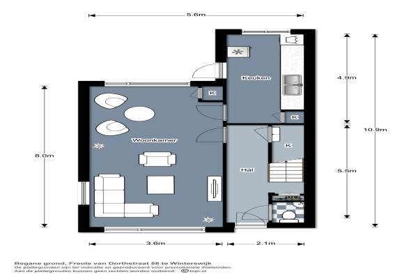 Het adres van deze woning uit 1962 is Freule van Dorthstraat 58 te Winterswijk. Het pand heeft een oppervlakte van 98m² en een perceeloppervlakte van 258m² en heeft 4 kamers kamers waarvan 3 slaapkamers. De geschatte waarde van deze woning is € 159.000.
