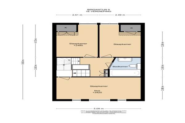 Het adres van deze woning uit 1988 is Brigantijn 9 te Woerden. Het pand heeft een oppervlakte van 106m² en een perceeloppervlakte van 137m² en heeft 5 kamers kamers waarvan 4 slaapkamers. De geschatte waarde van deze woning is € 385.000.