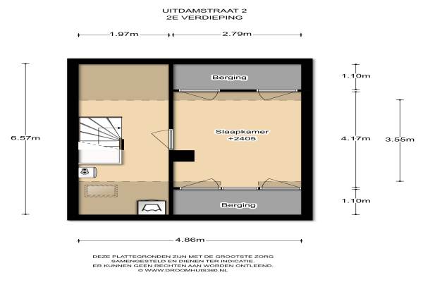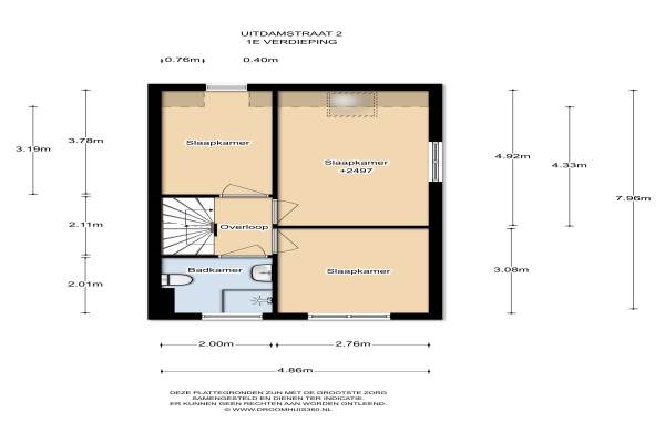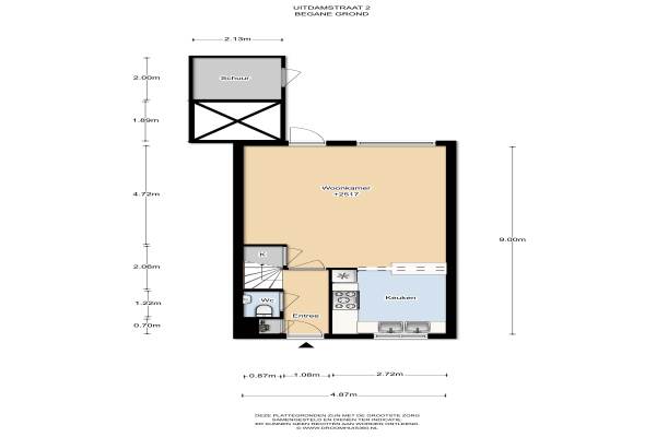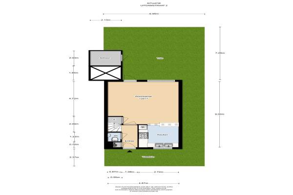 50 m² (7,26m diep en 6,95m breed)