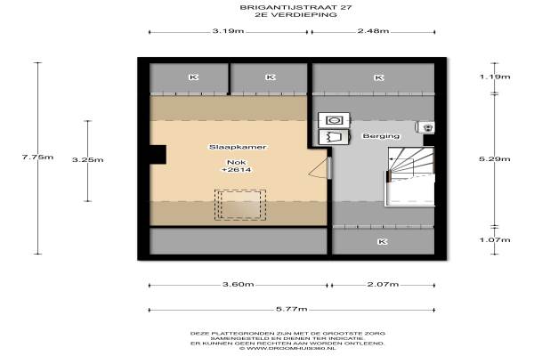 Het adres van deze woning uit 1970 is Brigantijnstraat 27 te Zaandam. Het pand heeft een oppervlakte van 114m² en een perceeloppervlakte van 151m² en heeft 5 kamers kamers waarvan 5 slaapkamers. De geschatte waarde van deze woning is € 259.000.
