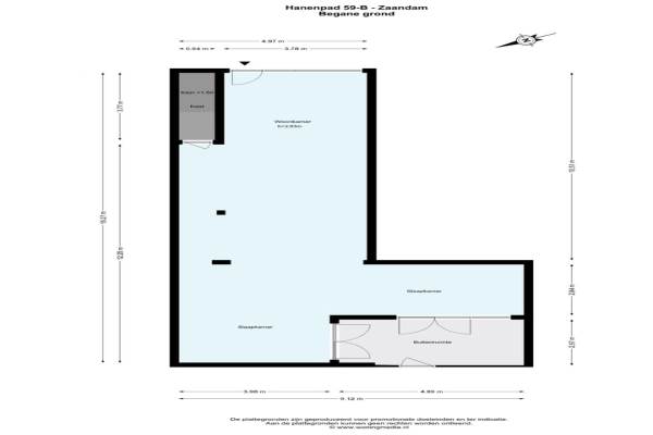 Het adres van deze woning uit 1958 is Hanenpad 59B te Zaandam. Het pand heeft een oppervlakte van 88m² en heeft 2 kamers kamers waarvan 1 slaapkamers. De geschatte waarde van deze woning is € 315.000.