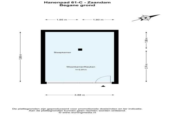 Het adres van deze woning uit 1958 is Hanenpad 61C te Zaandam. Het pand heeft een oppervlakte van 23m² en heeft 2 kamers kamers waarvan 1 slaapkamers. De geschatte waarde van deze woning is € 145.000.