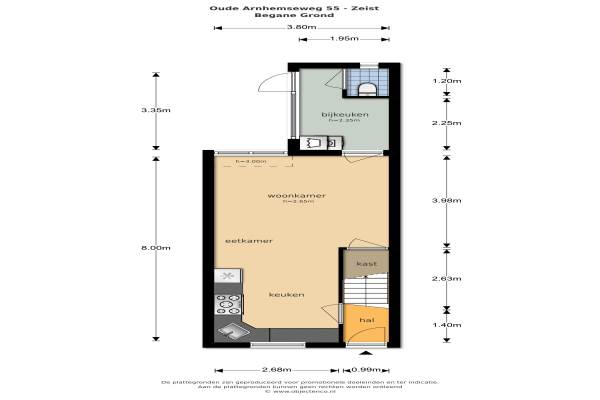Het adres van deze woning uit 1928 is Oude Arnhemseweg 55 te Zeist. Het pand heeft een oppervlakte van 69m² en een perceeloppervlakte van 95m² en heeft 3 kamers kamers waarvan 2 slaapkamers. De geschatte waarde van deze woning is € 250.000.