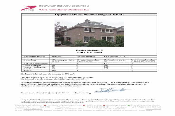 Het adres van deze woning uit 1929 is Bethani 5 te Zeist. Het pand heeft een oppervlakte van 182m² en een perceeloppervlakte van 446m² en heeft 6 kamers kamers waarvan 5 slaapkamers. De geschatte waarde van deze woning is € 825.000.