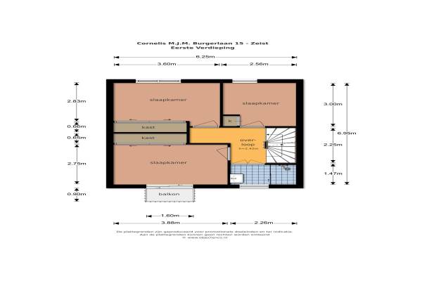 Het adres van deze woning uit 1952 is Cornelis M.J.M. Burgerlaan 15 te Zeist. Het pand heeft een oppervlakte van 109m² en een perceeloppervlakte van 147m² en heeft 5 kamers kamers waarvan 4 slaapkamers. De geschatte waarde van deze woning is € 319.000.