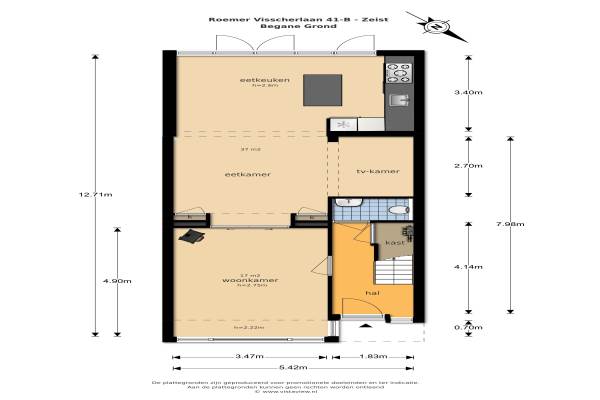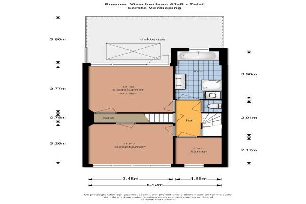 Het adres van deze woning uit 1939 is Roemer Visscherlaan 41b te Zeist. Het pand heeft een oppervlakte van 138m² en een perceeloppervlakte van 180m² en heeft 7 kamers kamers waarvan 5 slaapkamers. De geschatte waarde van deze woning is € 535.000.