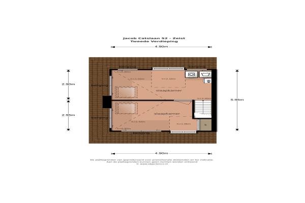 Het adres van deze woning uit 1935 is Jacob Catslaan 52 te Zeist. Het pand heeft een oppervlakte van 129m² en een perceeloppervlakte van 235m² en heeft 6 kamers kamers waarvan 5 slaapkamers. De geschatte waarde van deze woning is € 625.000.