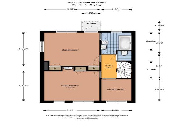 Het adres van deze woning uit 1950 is Graaf Janlaan 59 te Zeist. Het pand heeft een oppervlakte van 160m² en een perceeloppervlakte van 536m² en heeft 6 kamers kamers waarvan 5 slaapkamers. De geschatte waarde van deze woning is € 735.000.